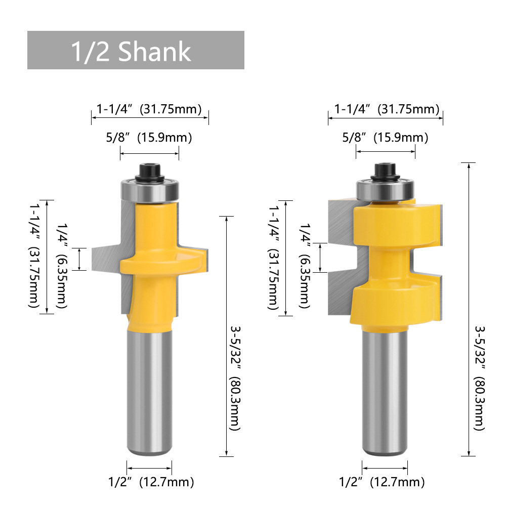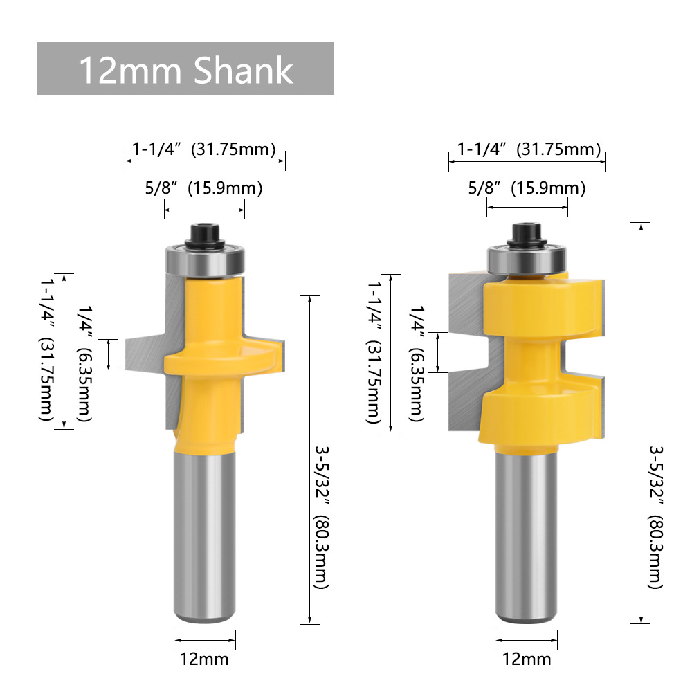 1/2 inch, 12mm shank bearing square tooth tenon router bit A tooth tenon cutter Engraving machine tool tenon cutter-023