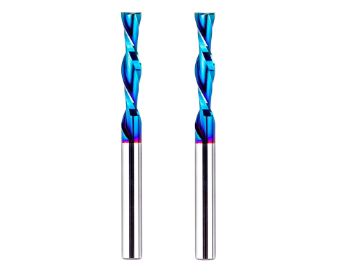 1/4 Inch Shank Spiral Router Bits 2 Flutes Solid Carbide Spiral Milling Tool 1/4 Inch Cutting Diameter with Nano Blue Coated- Down Cut