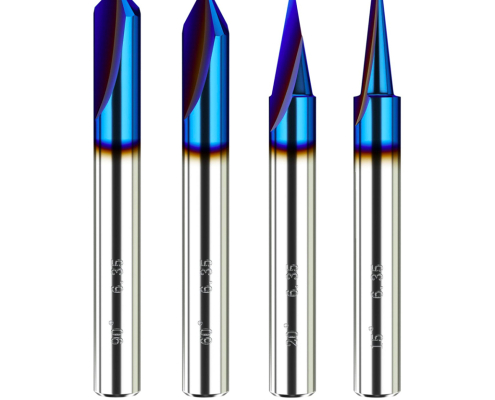 1/4 Inch Shank Engraving Bits 2 Flutes Straight CNC V-bit (15°/20°/60°/90°) CNC Wood Carving Router Bit Set with Nano Blue Coated