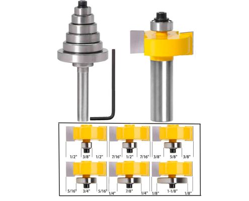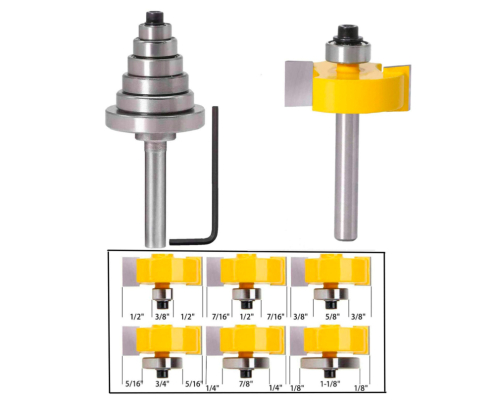 1/4 Inch Shank Rabbet Router Bit with 6 Bearings Set-1/8”, 1/4″, 5/16″, 3/8″, 7/16″, 1/2″ Interchangeable