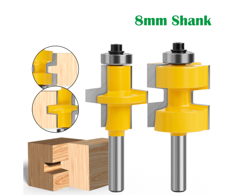 8mm shank Bearing square tooth tenon joint router bit B tooth tenon joint cutter tenon joint cutter Door frame tenon joint cutter