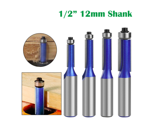 1/2 inch, 12mm shank Professional level edge trimming cutter router bit woodworking milling cutter, profile slotting cutter, double bearing edge trimming cutter