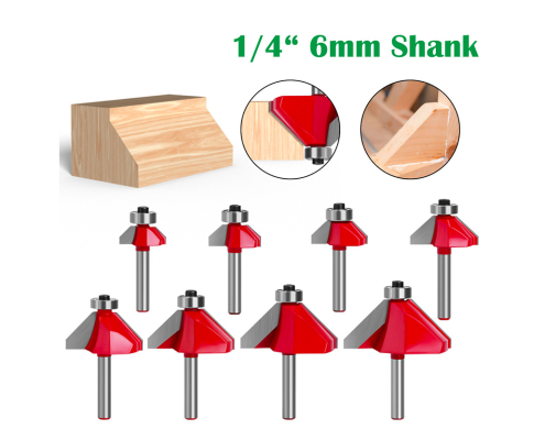 1/4 shank 45 degree bevel router bit, round head router bit, woodworking half round router bit, woodworking milling cutter, edge trimming machine use