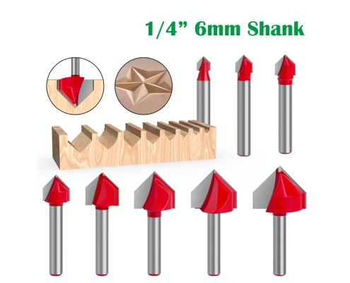 1/4 Inch Shank 90 Degree V Groove Router Bit, Double Flute Chamfer and Bevel Bit Carbide Tipped Woodworking Tool CNC Engraving Bit