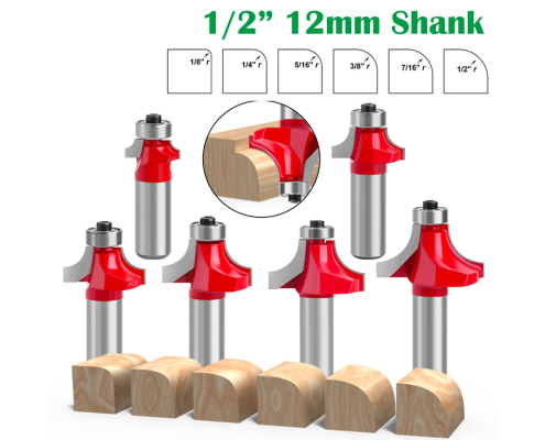 1/2 Inch Shank Roundover Router Bits Set, Corner Rounding Edge-Forming Bit Set-1/8″ 1/4″ 5/16″ 3/8″ 7/16″ 1/2″ Radius Woodworking Milling Tools