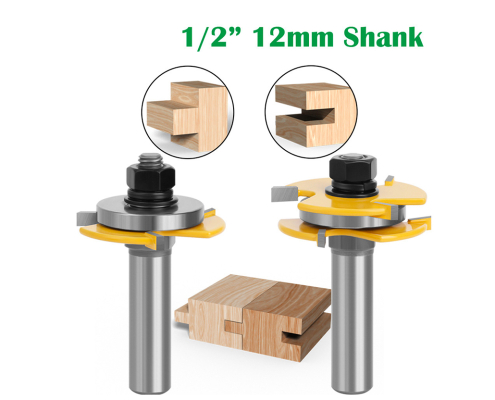 1/2 Inch,12mm Shank Matched Tongue and Groove Router Bit Set 3 Teeth T Shape Wood Milling Square tooth tenon cutter, floor cutter, panel cutter