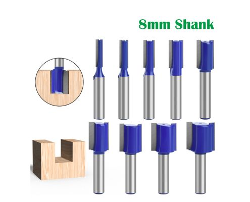 8mm shank 9-piece set of blue woodworking slotting straight knives, double-edged straight knives, slotting milling cutters, woodworking milling cutters